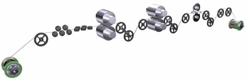 Í þessu ferli er kringlóttum vírum rúllað í fitu og / eða sérstaka lagaða rúmfræði. Meðan á ferlinu stendur er vírnum rúllað í nokkrum stigum lóðrétt og lárétt (brún rúlla). Mikið úrval af mismunandi sniðum á við.